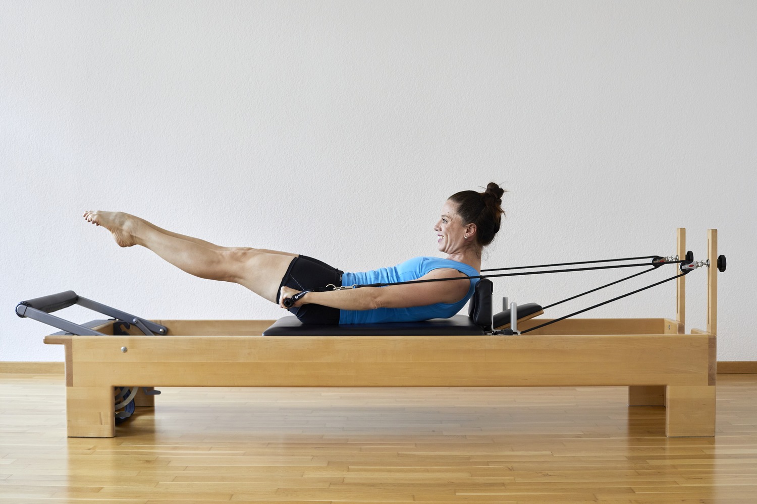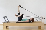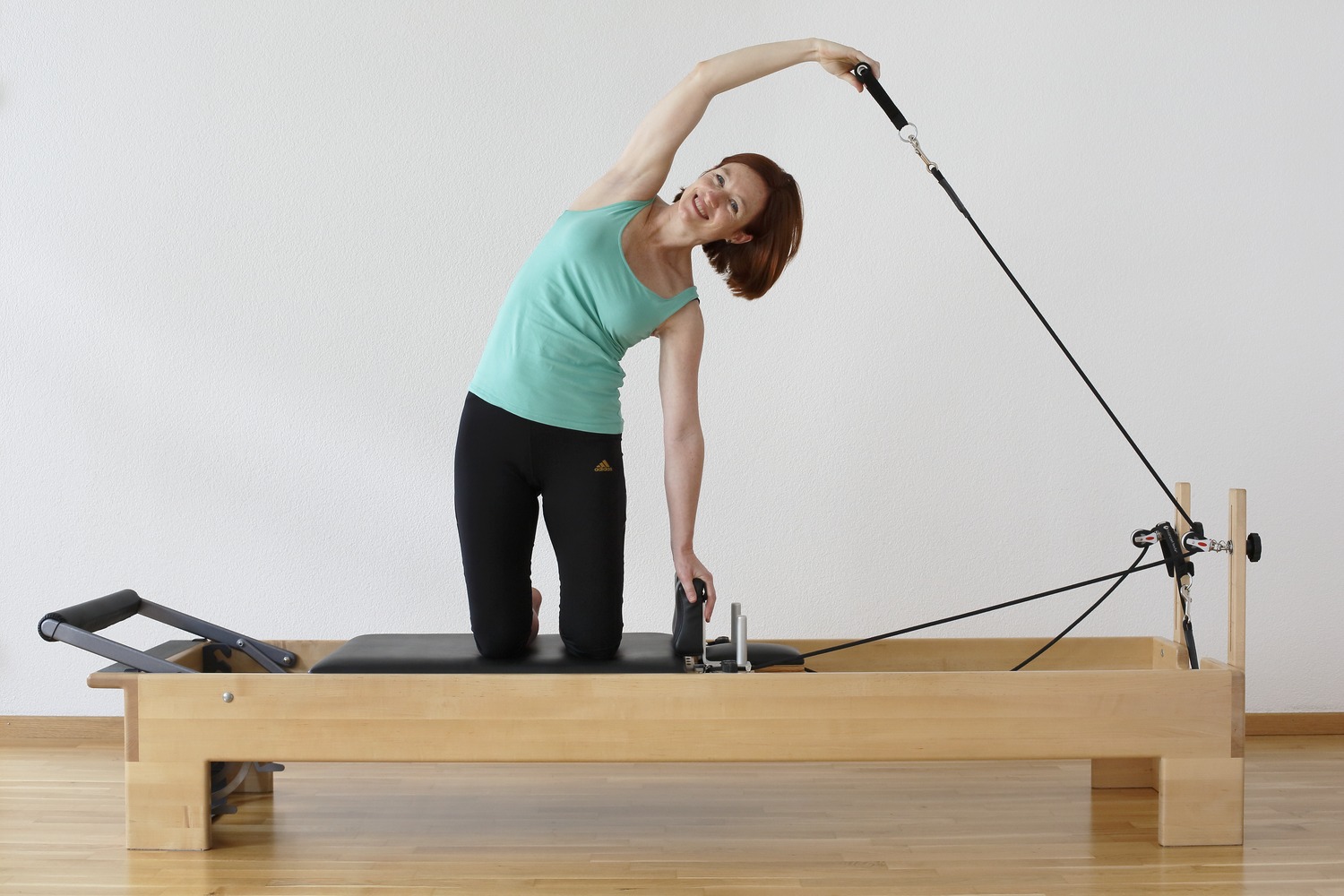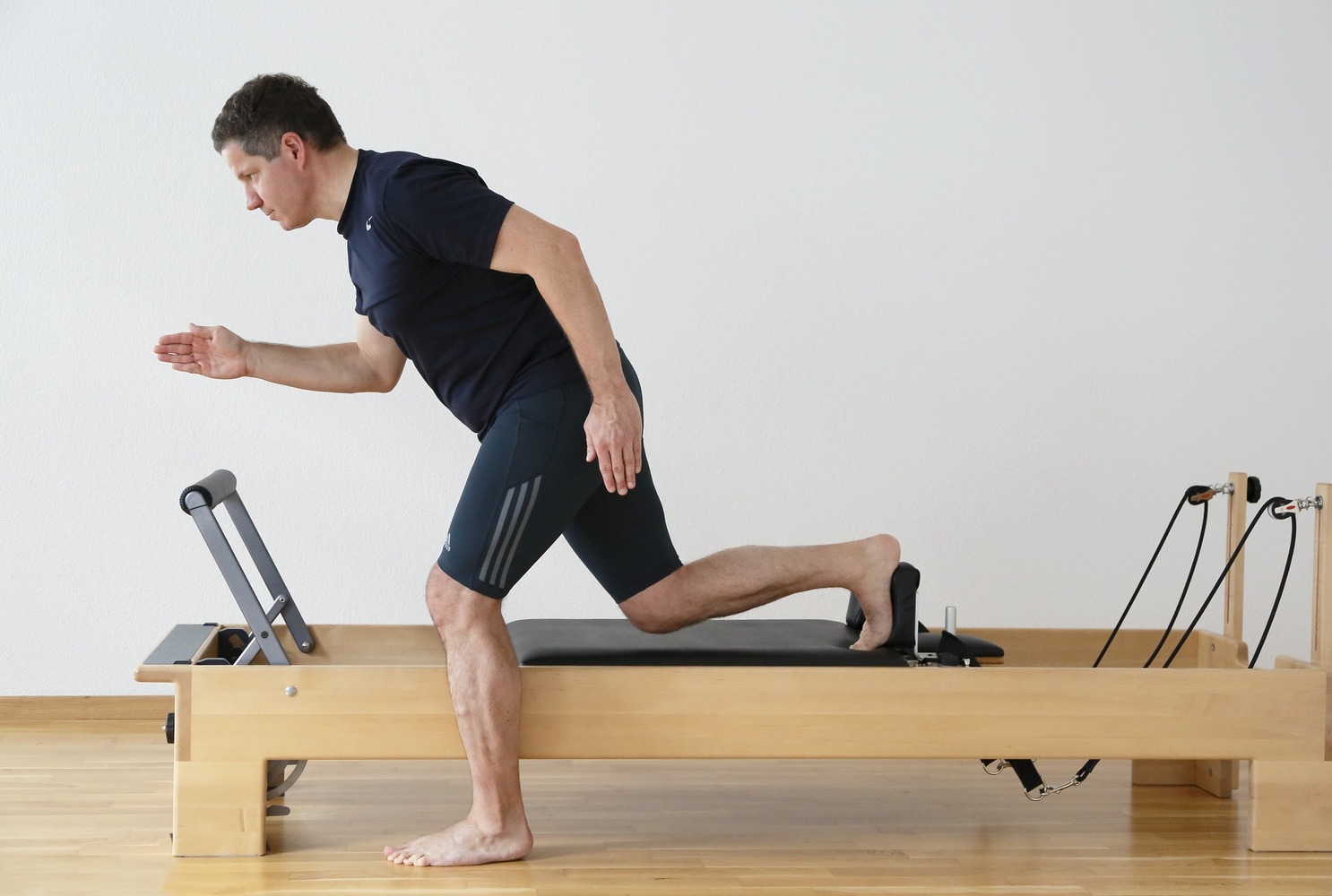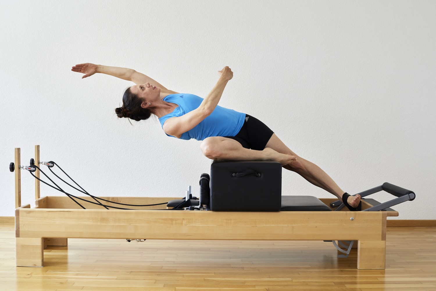 Der Reformer ist das bekannteste und beliebteste Pilates-Trainingsgerät. Wie bei allen Pilates Großgeräten gibt es für den Reformer eine Vielzahl an Kräftigungs- und Stretching-Übungen für alle Schwierigkeits-Level. Die Konstruktion des Gerätes erinnert an einen Bettrahmen, in den ein Schlitten integriert ist. Der Schlitten bewegt sich auf Schienen und ist an Federn aufgehängt. Der Trainierende sitzt, kniet, liegt oder steht auf dem Schlitten und bewegt ihn über Arme, Beine oder Seilzüge gegen den Federwiderstand. Der Federwiderstand nimmt mit der Länge kontinuierlich zu und ermöglicht dadurch ein gelenkschonendes, dosierbares Krafttraining. (Text: Deutscher Pilates-Verband)