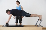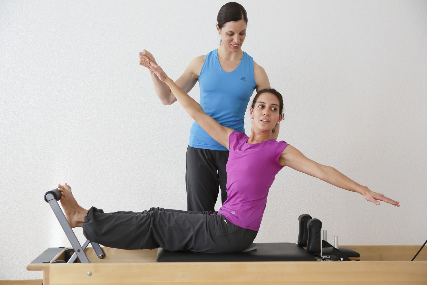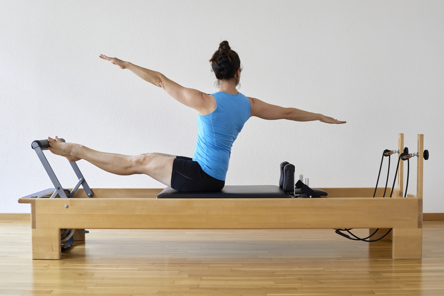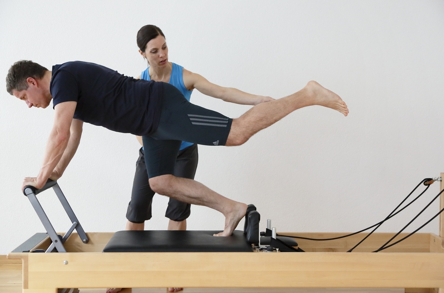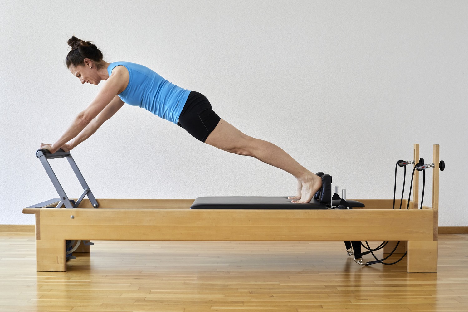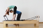 Der Reformer ist das bekannteste und beliebteste Pilates-Trainingsgerät. Wie bei allen Pilates Großgeräten gibt es für den Reformer eine Vielzahl an Kräftigungs- und Stretching-Übungen für alle Schwierigkeits-Level. Die Konstruktion des Gerätes erinnert an einen Bettrahmen, in den ein Schlitten integriert ist. Der Schlitten bewegt sich auf Schienen und ist an Federn aufgehängt. Der Trainierende sitzt, kniet, liegt oder steht auf dem Schlitten und bewegt ihn über Arme, Beine oder Seilzüge gegen den Federwiderstand. Der Federwiderstand nimmt mit der Länge kontinuierlich zu und ermöglicht dadurch ein gelenkschonendes, dosierbares Krafttraining. (Text: Deutscher Pilates-Verband)
